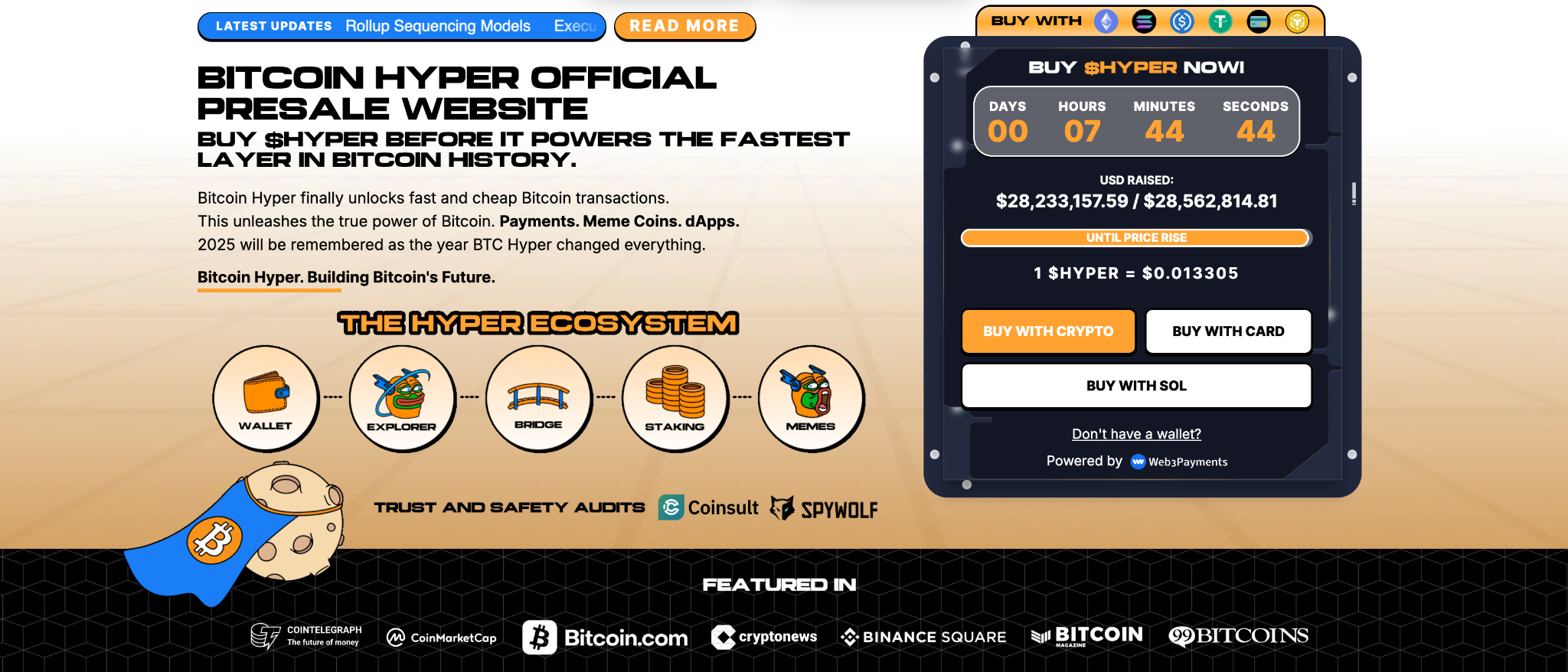 Bitcoin Hyper está aumentando a medida que los comerciantes salen de los debilitados derivados de BTC y se acumulan en preventas. Se está convirtiendo rápidamente en una de las principales opciones de preventa de criptomonedas, y los números lo respaldan: