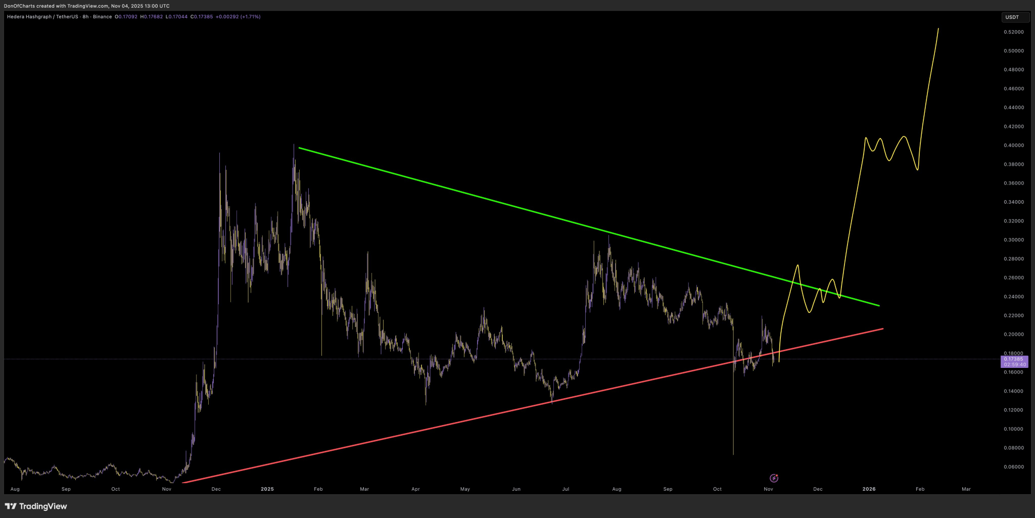 Mientras se mantengan los 0,16 dólares, los alcistas seguirán teniendo el control. Una ruptura por encima de 0,175 dólares podría iniciar el próximo gran repunte. HBAR no es el proyecto más ruidoso de las listas, pero a veces esa es la señal.