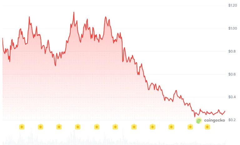 ONDO cotizaba a 0,28 dólares el 27 de marzo, con el token cayendo aproximadamente un 87% desde su máximo histórico de 2,14 dólares establecido en diciembre de 2024. El panorama macro ha sido brutal para ONDO, ya que el aumento de las tasas y el sentimiento de aversión al riesgo afectaron duramente a los tokens RWA en todos los ámbitos.