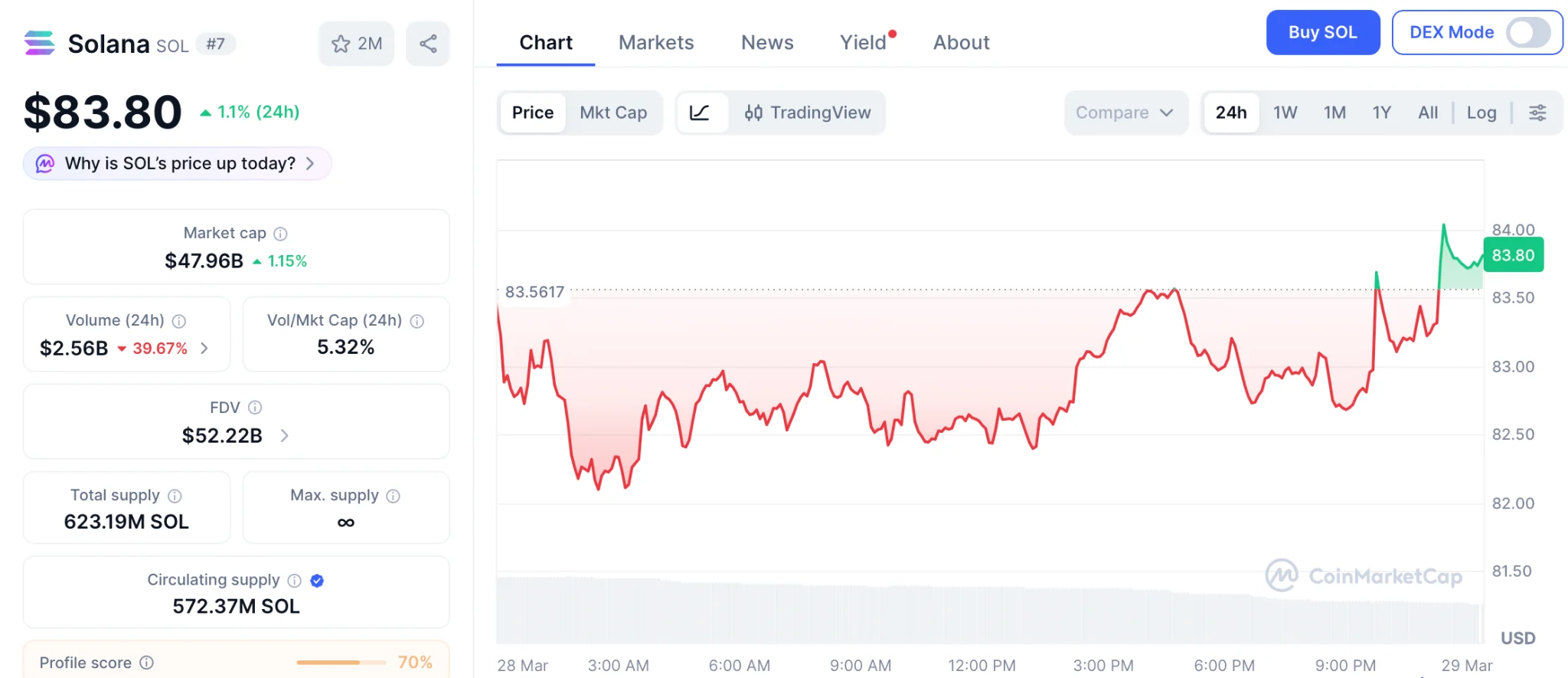 La predicción del precio de Solana se beneficia de este cambio global, pero he estado analizando los números y SOL a 83,80 dólares con una capitalización de mercado de 40 mil millones de dólares no puede ofrecer el tipo de rendimiento que cambia la forma de vivir.