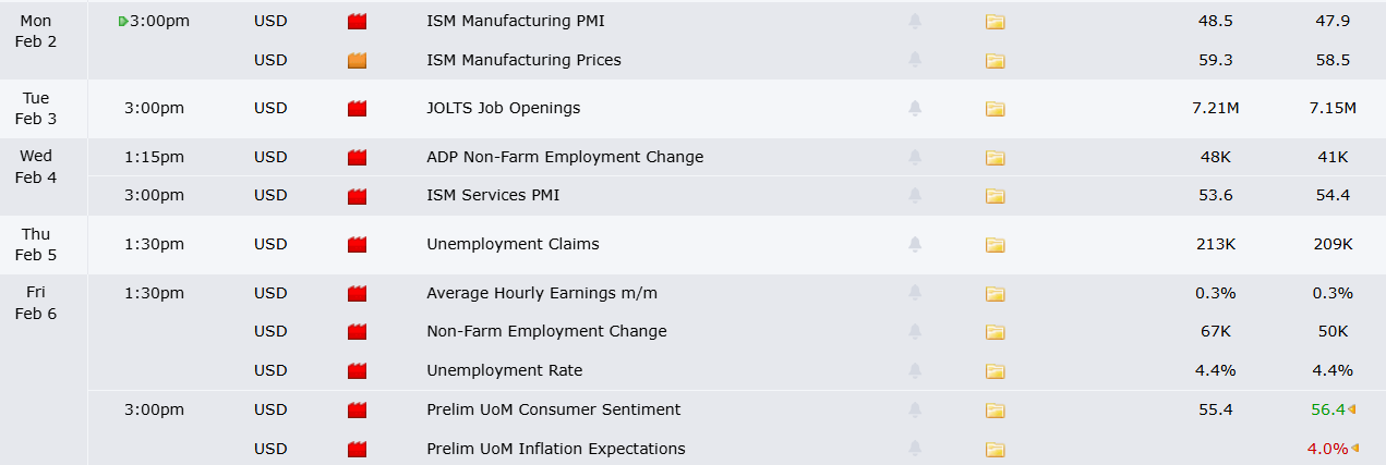 El informe de empleo del viernes correspondiente a enero espera que la economía estadounidense agregue 65.000 puestos de trabajo el mes pasado. Se prevé que la tasa de desempleo se mantenga en el 4,4%.